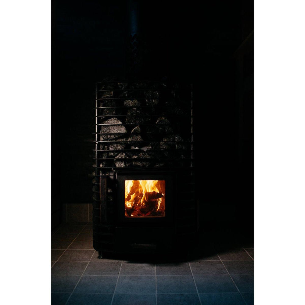 The double casing of the Narvi Velvet sauna heater streamlines the stacking of stones, while the glazed hatch enables precise temperature control and creates a comfortable atmosphere in the steam room. Wooden handles enhance user convenience, making it easy to manage and maintain.