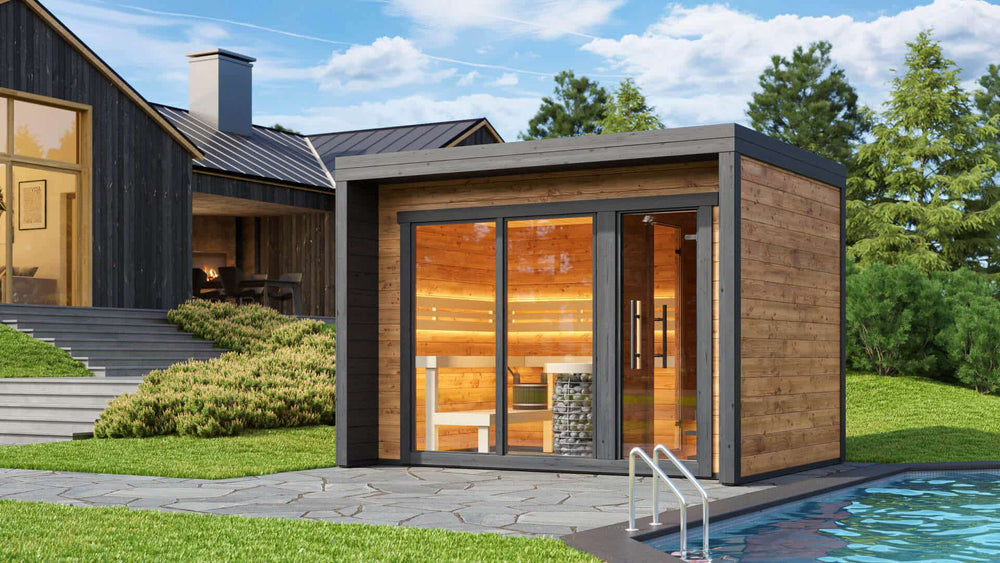 Patio M outdoor prefab sauna is typically installed in a backyard or any other outdoor space in the USA. “Prefab”, or “prefabricated” saunas are manufactured in sections/parts, and shipped to the installation site in a nicely packaged crate. The word “prefabricated” refers to factory-made components that are pre-made, and ready to be assembled according to an instruction manual. This makes these saunas much easier to install than traditional saunas.