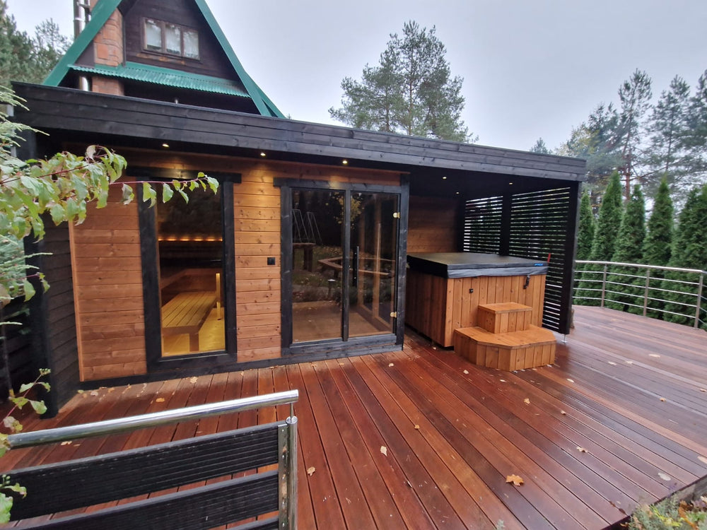 The Patio L Plus Outdoor Sauna Cabin Kit is a premium-grade product designed for installation in the backyard and outdoor spaces across Canada and the USA. Unlike traditional saunas that require custom construction on-site, this sauna is prefabricated and shipped in sections/parts, making it much easier to install. The factory-made components of the Patio L Plus are pre-made and ready to be assembled according to the instruction manual, saving you both time and money. The open area is ideal for having an outdoor hot tub or cold tub.
